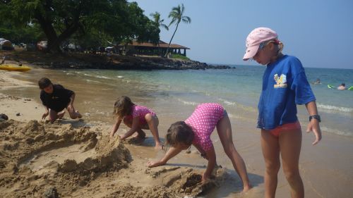 Elles parlent français alors toute la journée on joue ensemble, on construit des châteaux de sable et on se baigne.