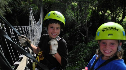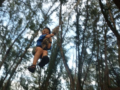 On va faire de l'accrobranche. Il y a pleins de tyroliennes et de ponts de cordes. La plus grande des tyrolienne fait