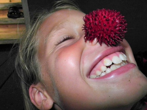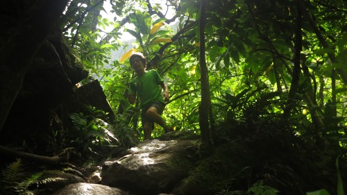 On fait 14km à pieds, il y a pleins de moustiques. Nous trouvons en chemin une papaye. On traverse 12 torrents et deux rivières