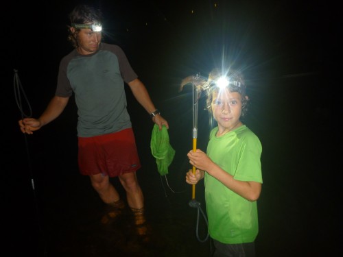 A la nuit, nous partons chasser avec des harpons les écrevisses d'eau douce. J'en attrape 3, papa une dizaine + quelques