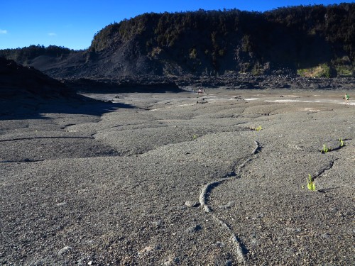 Petit déj. puis moment carnet au soleil. Nous mangeons puis nous partons faire une marche de 8km dans le fond d'un cratère (Kilauéa iki )