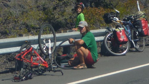Nous roulons une demi-heure, et je me rend compte que j'ai crevé. C'est la première crevaison d'Hawaii.