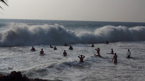 Il y a de grosses vagues, mais nous nous baignons qu'en même.
