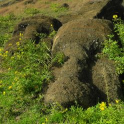 Les moais en prirent un sérieux coup... Pour certains, ils furent jetés à terre par les tribus en guerres, pour