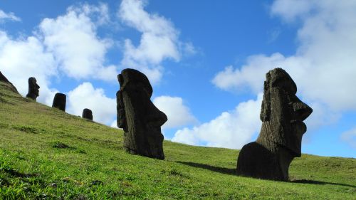 Les moais (grandes statues de pierres monolithique taillés à même la montagne) sont omniprésent partout sur l'île.