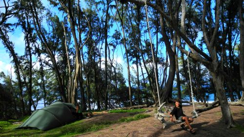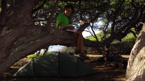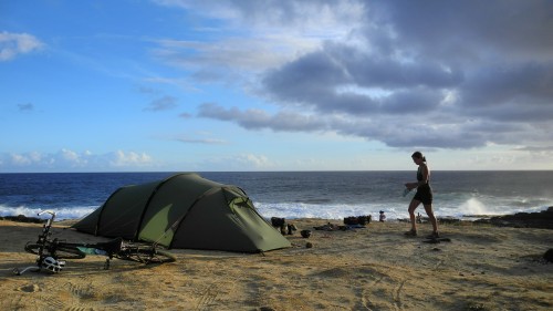La côte est tellement irrésistible que l'on se sent obligé de s'arrêter en chemin et campons à Ka'Alu Alu bay.