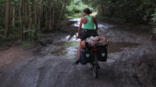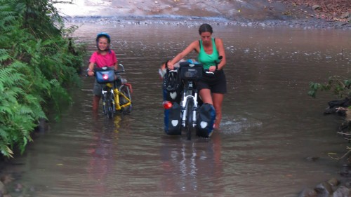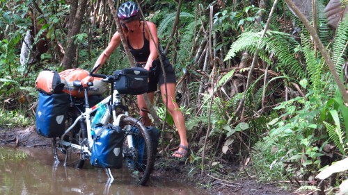 nous forçons... en poussant, portant trainant les vélos chargé à la descente...