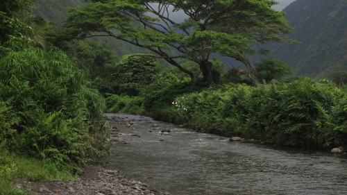 vallée encaissée de tous les diables, chargée d'histoire, fief de la culture du taro, maintenant un repère pour une