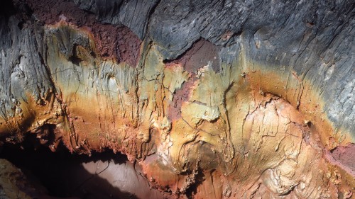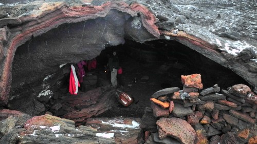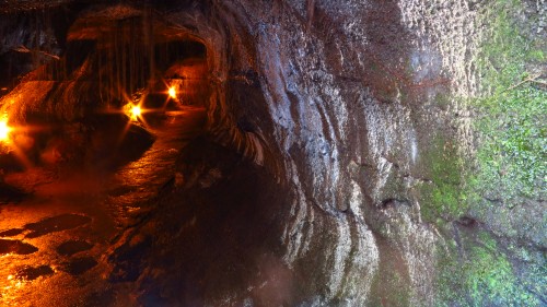 On est passablement trempé quand nous trouvons refuge dans un tunnel de lave. ça tombe bien, car