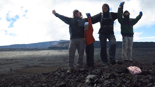 Nous savourons notre arrivée au cratère et festoyons... 4025m au GPS !